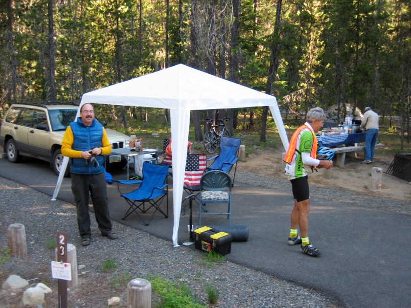 DAY TWO dished out 206 hot miles. This is at the Lodgepole Control. I neglected to bring my ear plugs and the sleeping quarters at the first overnight control were very hot. I think I slept only an hour or two, so at 1:30 a.m. I got up, had a little breakfast and was on the road by about 3:00 a.m.