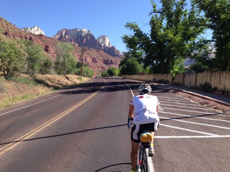 Nearing Zion, spires in the background.