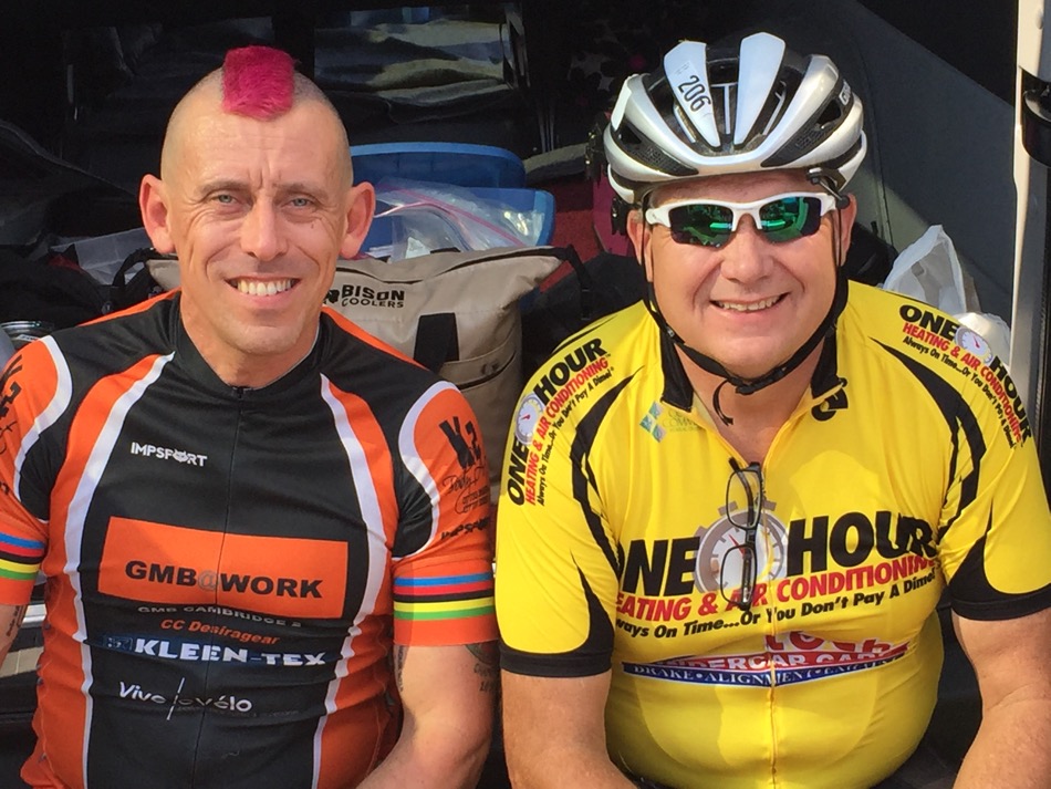 Paul (left) and Frits — the night dream team! Stayed awake all night. Note our “unlucky” 13 rider number.