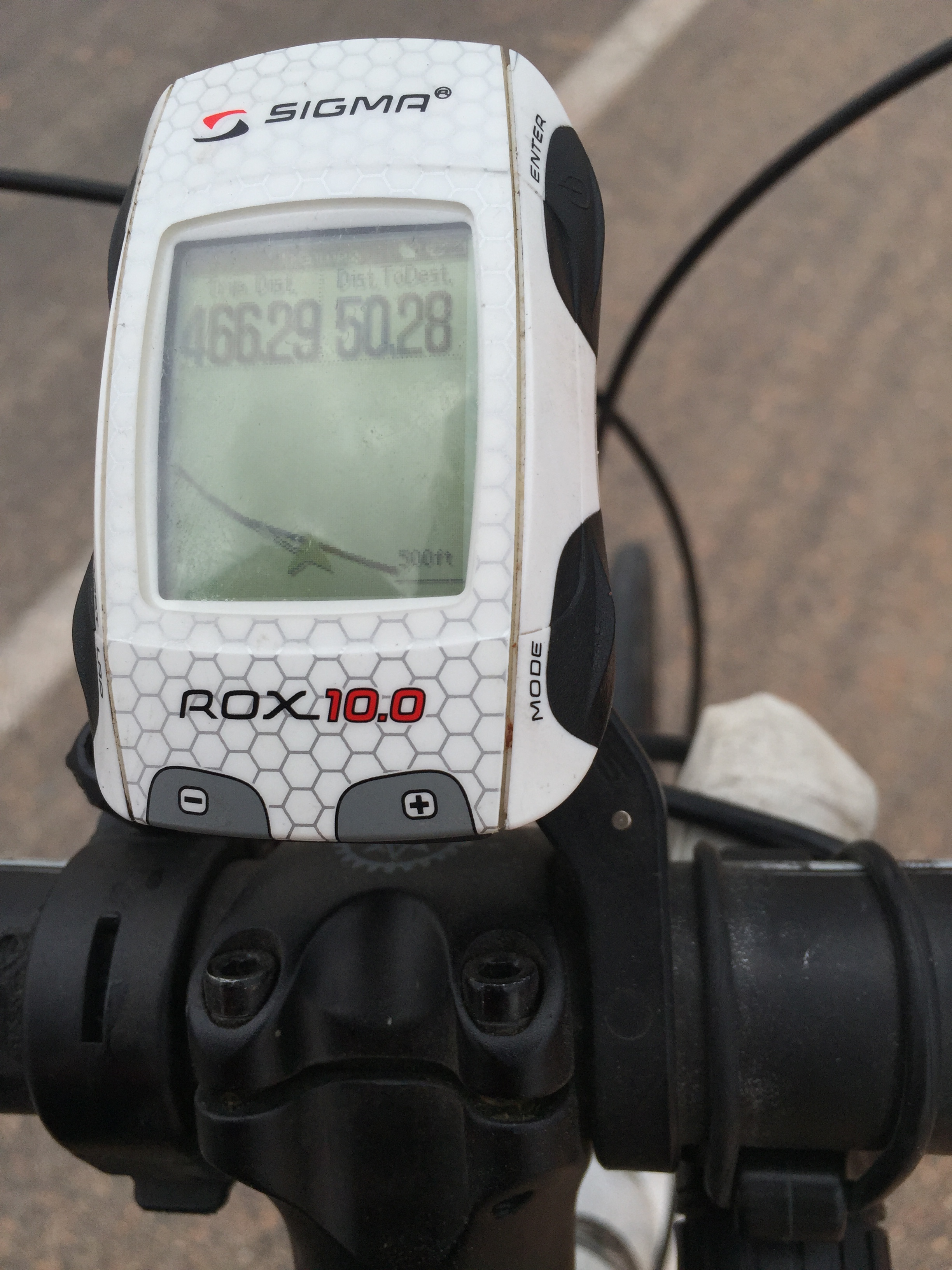 Day three started at about 4:15 a.m. Kerin had left earlier as I was slow getting going that day. The forecast was much better. I passed a few groups as dawn was breaking and came upon Kerin again. We rode the first half together, working together on the flats drafting and sometimes side-by-side talking. Later that day, my knee started hurting, which was a totally new problem for me, I had her ride on ahead of me, while I tried to fix my problem. I usually have saddle sores, but rarely other issues. I thought it must be the height or angle of my saddle and started to fiddle with it several times to little avail. So just ingested more “vitamin I” to mask the pain. Part of my elevated sole (to compensate for leg length inequality) of my sole fell off, so I jury-rigged up some wood on my pedal to compensate for this. Mileage on day three was 193.