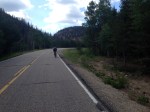 I decided to “use up” one old tire and put it on the back rim, which had kept me flat-free for the past several thousand miles that spring. But as seems to be tradition with this ride, I got two back-to-back flats about 70 miles in on day one. I was carrying a spare tire and swapped it out, later disposing of that tire. Because of this flat, I fell behind many of the riders I would have like to hang with. This year, the climb up Cameron Pass was dreadful, due to tons of biting black flies. Kinda like horse flies, but smaller. Dozens of them all over my legs and arms, but oddly not my face! I thought that as I climbed up to cooler temps, they would dissipate, but they didn’t.