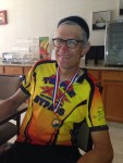 I just kept on doing laps and ended up rolling into the finish line with 344 miles and about 20 minutes left on the clock. This race offers no short loop option, so if I wanted to get more mileage, I would have to complete another complete lap, which was taking over 90 minutes each and they would pro-rate my mileage for the 20-minutes left. As it turns out, I was the only 60-year old in my category, so I had nobody to “beat,” and I decided to call it quits. That provided me with a 5th place overall finish, out of 18 solo guys (of all ages). 1st through 4 get a spot on the podium.