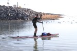 I looked at the new prices for 12′ 6″ boards and they in the $1300-$1700 range. I could not find a local used board with a displacement nose. Since this was for training, I decided to go with a rather unknown board, made by Isle Standup Paddle Boards San Diego. I got a small pro discount, so the board cost less than a grand. (Their business model is similar to my camera bag business in as much as they deal mostly customer-direct, providing a better value — no middle man dealer or distributor). I liked their honest SUP Comparison Chart that showed the difference in stability between displacement vs. planing nose designs. This board has a displacement nose similar to a kayak or canoe. This feature was found only on the more expensive boards, but is desirable for flat water paddling. I had already purchased a carbon fiber paddle so I did not purchase theirs (they only run a $100 with the purchase of a board — a heck of a value, although they only offer a “wide body” 9″ paddle which I don’t care for). The board has a nice smooth finish and the inside is made from 1.5 lb. EPS foam inside with a rugged-looking fiberglass outer skin. I liked the fact that this board had a recessed deck, putting my weight lower in the water.