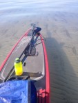 > My board was a 14’0″ x 28″ carbon fiber Admundson TR-X with a Surftech carbon fiber SUP paddle (their so-called small-size blade). I have since then replaced this board with a better “flat water” unit, that has less rocker. My back-up paddle was a “clunky kayak” Cairsle.