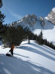 Rando skiing on March the 5th, 2011 with Jim Knight and his new kid “Bette.” This is on the shoulder or flank of Mt. Timpanogos, just up from Aspen Grove.