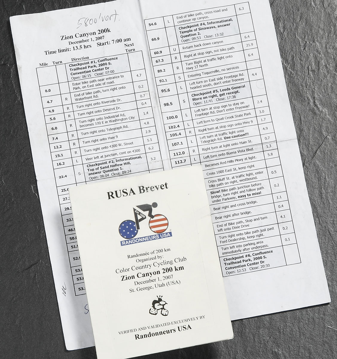 Previous Image BrevetCards04a Brevet card & cue sheet from my first brevet. Do a double-click through on any photo to see a larger image.